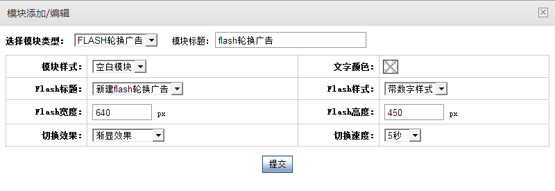 切换效果,设置flash轮换广告的显示效果,具体效果您可以设置后到前台看下