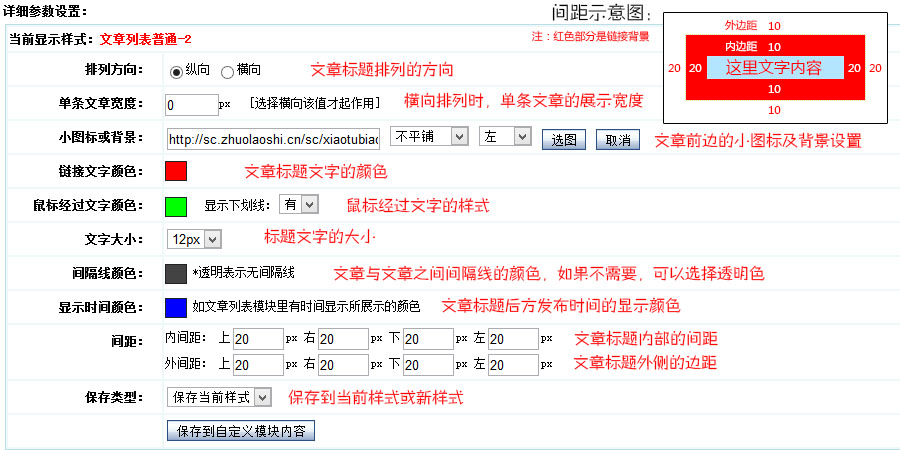 登陆网站后台》网站样式管理》模块内容样式管理》文章列表普通