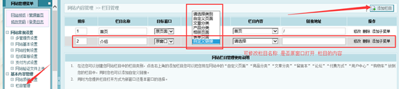 同时为您提供栏目打开方式为新窗口还是本窗口的选择。