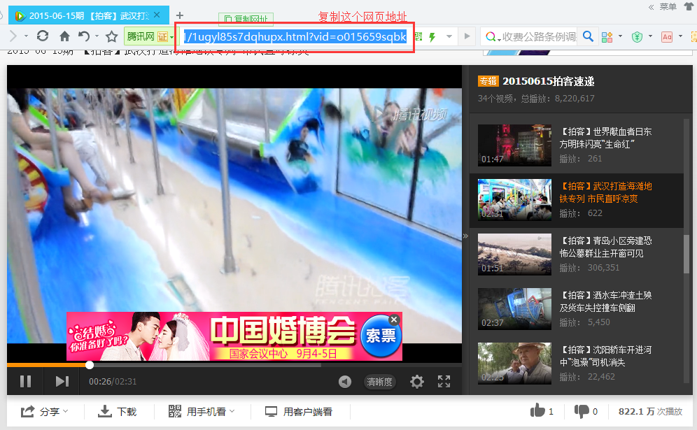 首先到腾讯视频网站,打开您要分享的视频,然后复制链接地址