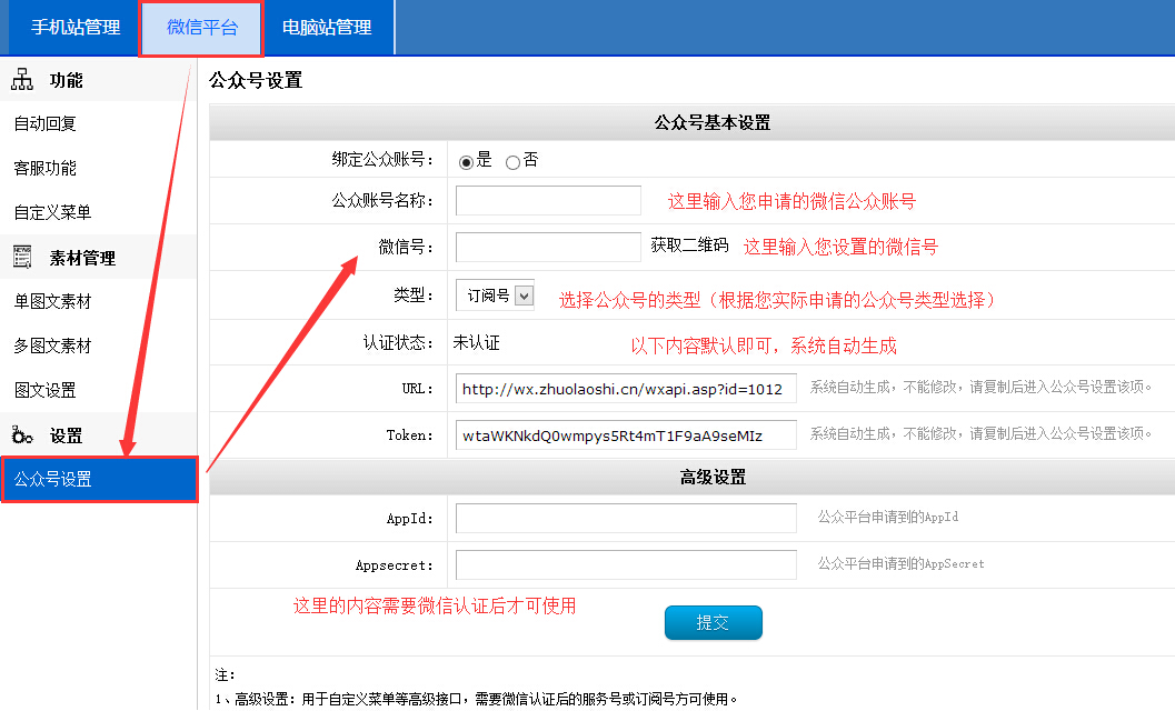 这样就可以了,根据您申请的公众账号类型,开放的功能也不同(这里不是我们平台的限制哦,是您的公众号权限不够,认证后的服务号权限是最高的)
